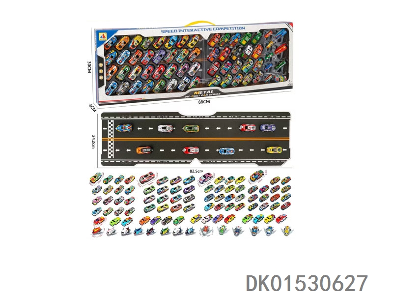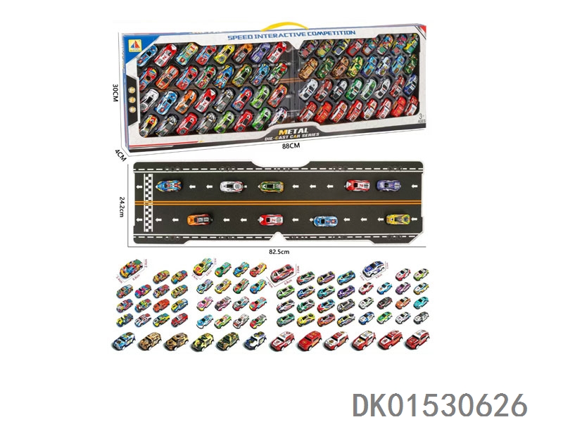 53只礼盒装铁皮回力车模+带纸板赛道(7.5CM车32只+8.6CM车21只)
