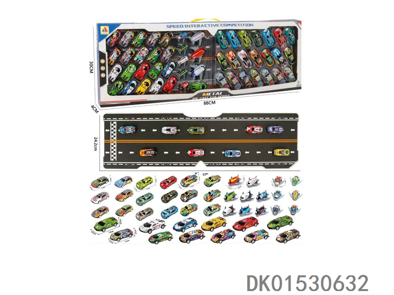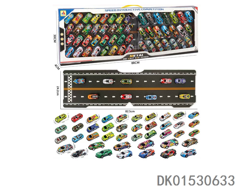 48只礼盒装铁皮回力车模+带纸板赛道(6.8CM车32只+10.5CM车16只)