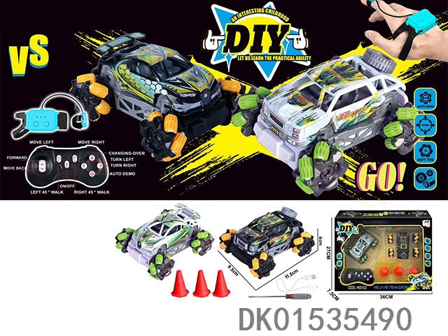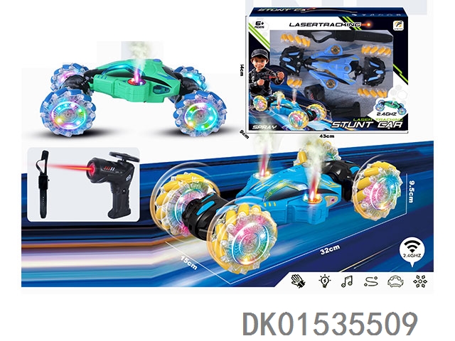 11通扭变特技车,前进、后退、左转圈、右转圈,扭变特技、灯光,音乐、一键喷雾,双投影,加配手表遥控