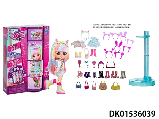 高档CRY BABIES BFF11.5寸11关节实身彩虹哭泣芭比娃娃带5惊喜配件发夹。手提包。鞋子。梳子。一个模特架