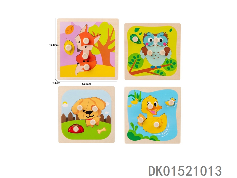 木质动物手抓板拼图早教益智玩具四款混装