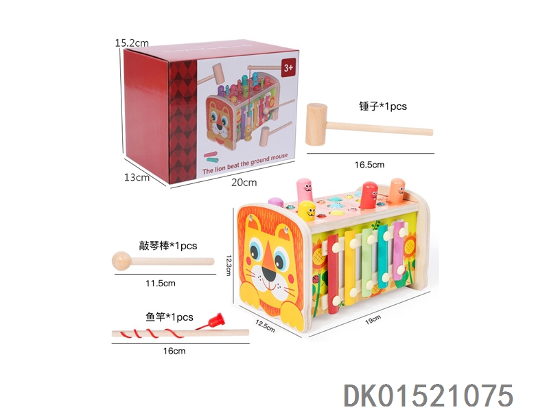 木质多功能钓鱼敲琴打地鼠益智玩具