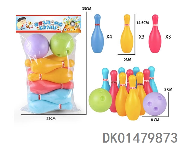 Ball toy bowling ball (6 bottles, 2 balls, 23cm) with 3 small balls inside the bottle