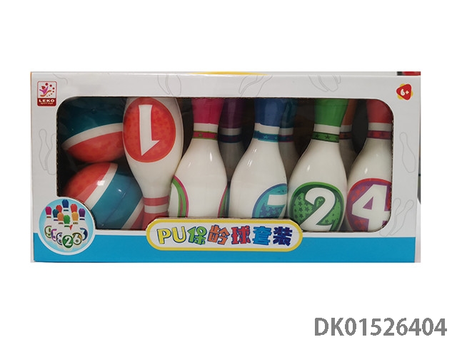 Pu digital bowling set bottles: height 12.3cm, balls: 7.5cm 6 bottles and 2 balls