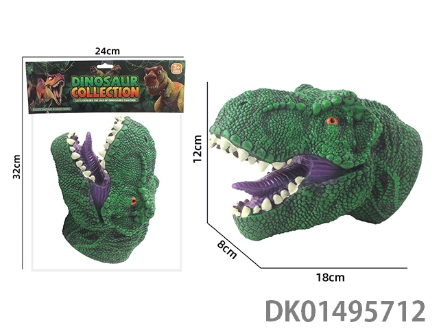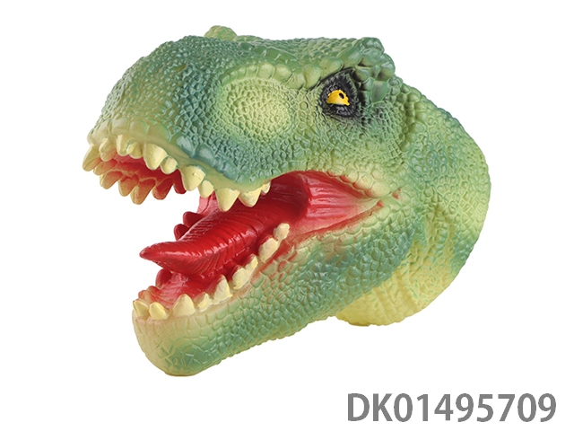 Tyrannosaurus rex dinosaur light green hand puppet head
