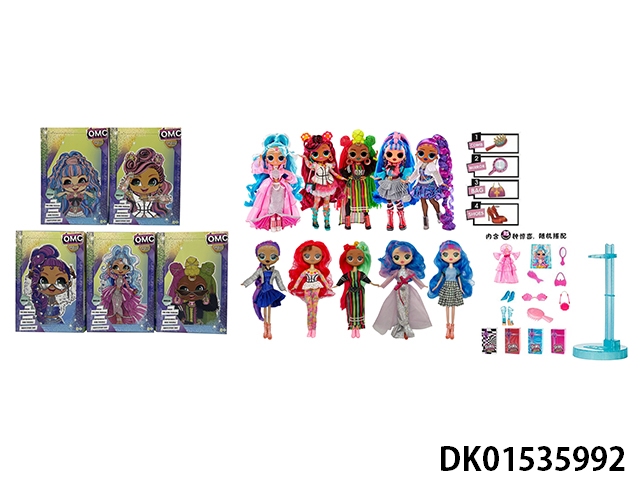 第12代OMG..LOL豪华版QUEENS皇后系列10寸12关节实身惊喜娃娃配模特支架.  惊喜眼镜。梳子。镜子,手提包。鞋子。换装衣服一套7款惊喜配件