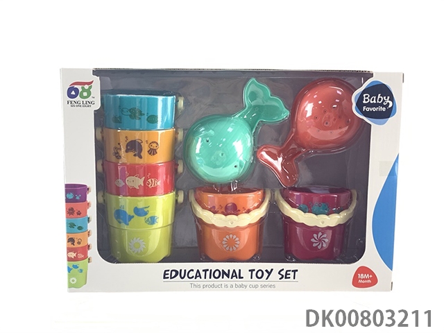 6个叠叠杯+6款(混装)搪胶捏捏响动物