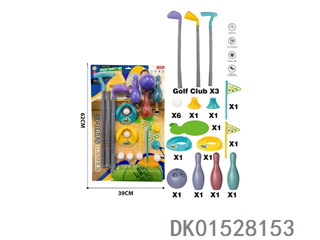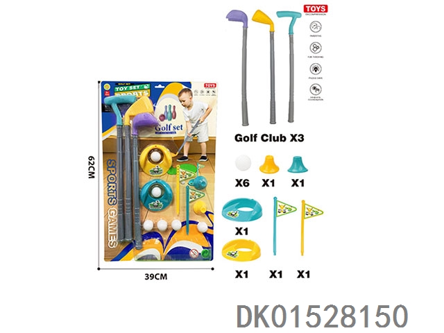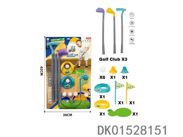 高尔夫球杆3支+球洞 旗 球位 2套 球6粒+配一张纤维无纺布64x72cm +保龄瓶3个+球1个