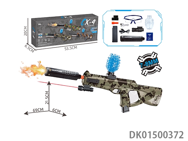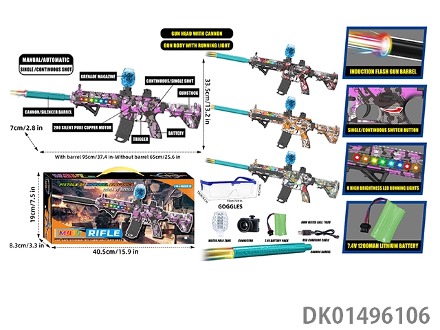 可拆装4节12合1双锂电池供电七彩灯光电动声音大M762突击步枪水球8毫米空气弹射上供弹3种模式射击游戏套装(枪头感应镭射灯炮和枪身环绕流星灯)
