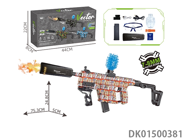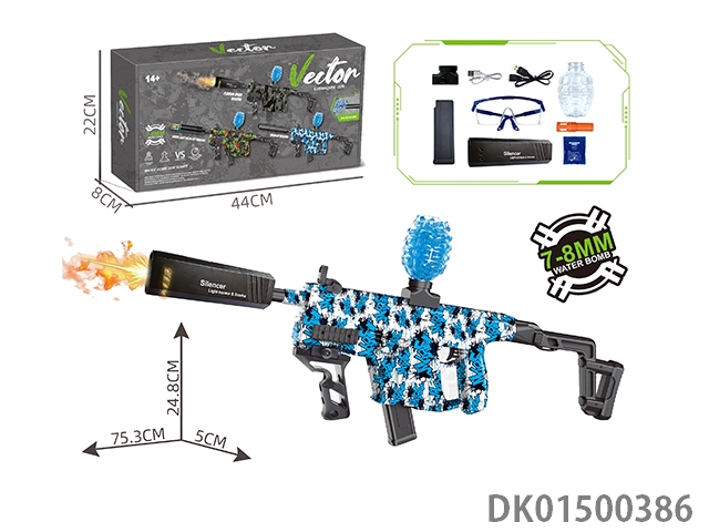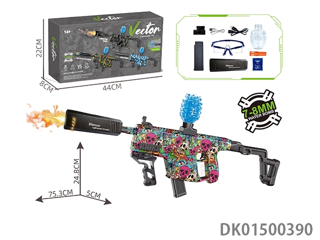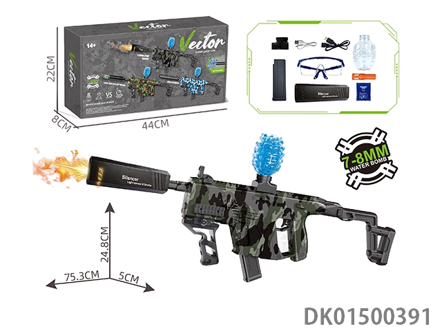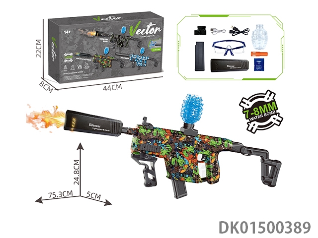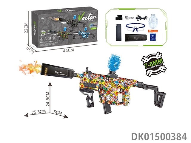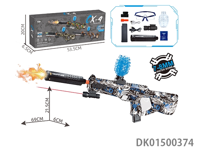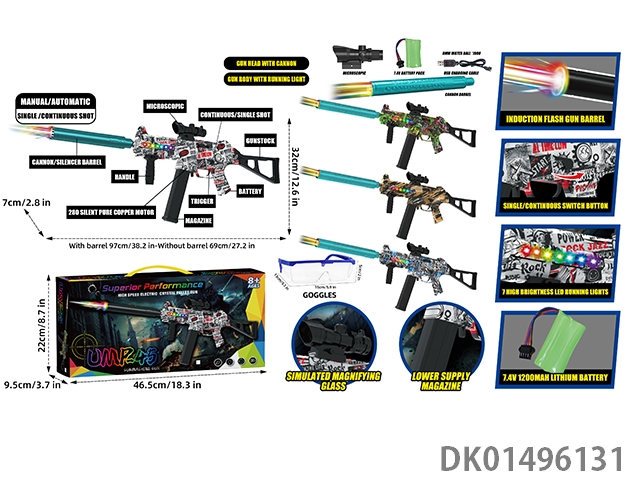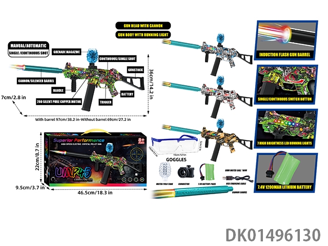 可拆装3节10合1双锂电池供电七彩灯光电动声音大UMP45大冲锋枪水球8毫米空气弹射下供弹3种模式射击游戏套装(枪头感应镭射灯炮和枪身环绕流星灯)