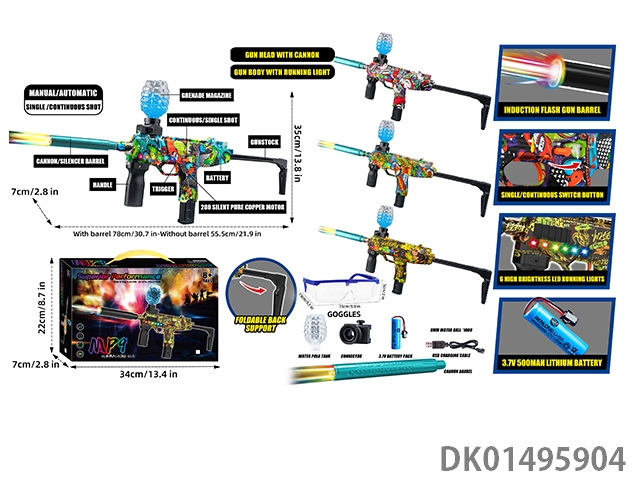 折叠式可拆装10合1双锂电池供电七彩灯光电动声音MP9冲锋枪水球8毫米空气弹射上供弹3种模式射击游戏套装(枪头感应镭射灯炮和枪身环绕流星灯)