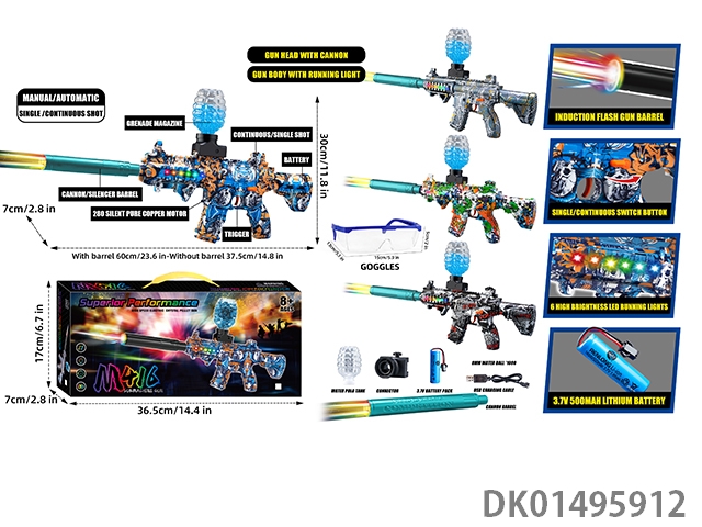 可拆装9合1双锂电池供电七彩灯光电动声音M416突击步枪水球8毫米空气弹射上供弹3种模式射击游戏套装(枪头感应镭射灯炮和枪身环绕流星灯)
