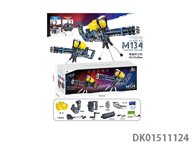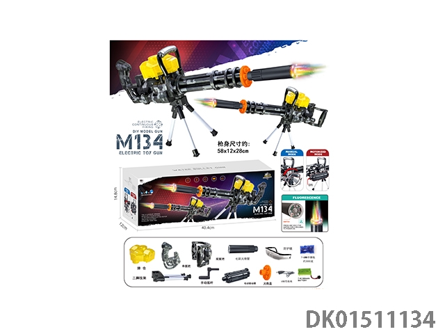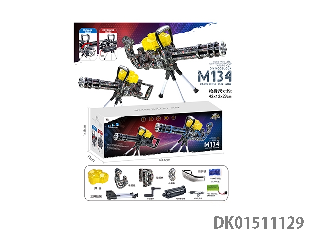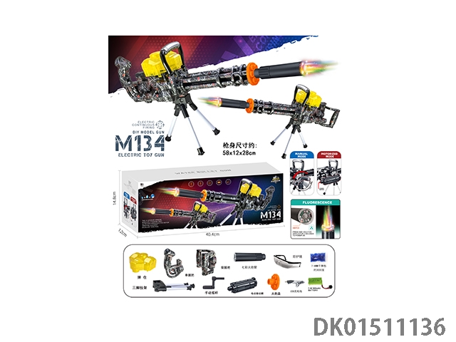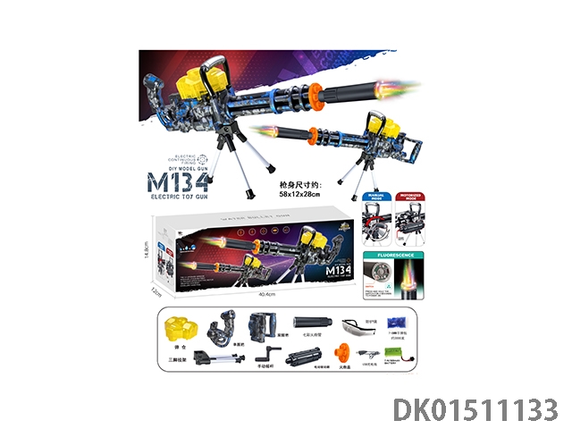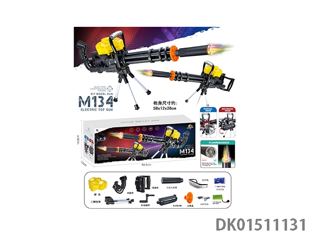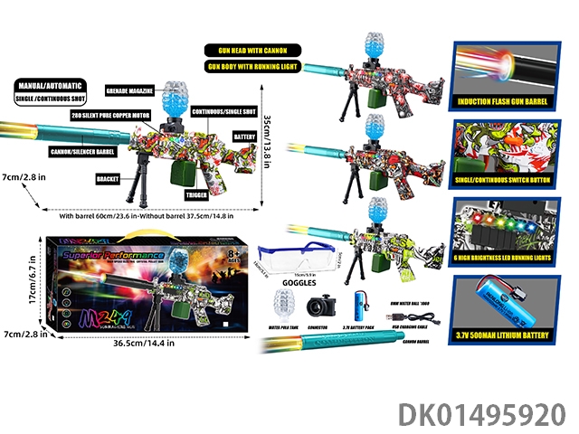 可拆装11合1双锂电池供电七彩灯光电动声音M249轻机枪水球8毫米空气弹射上供弹3种模式射击游戏套装(枪头感应镭射灯炮和枪身环绕流星灯)
