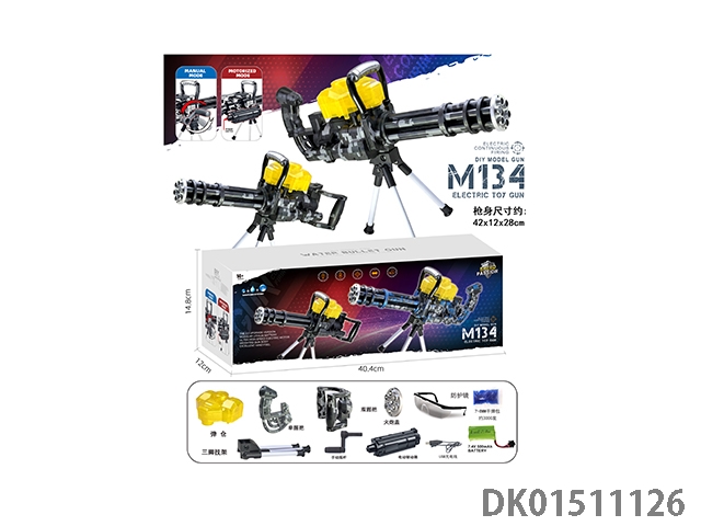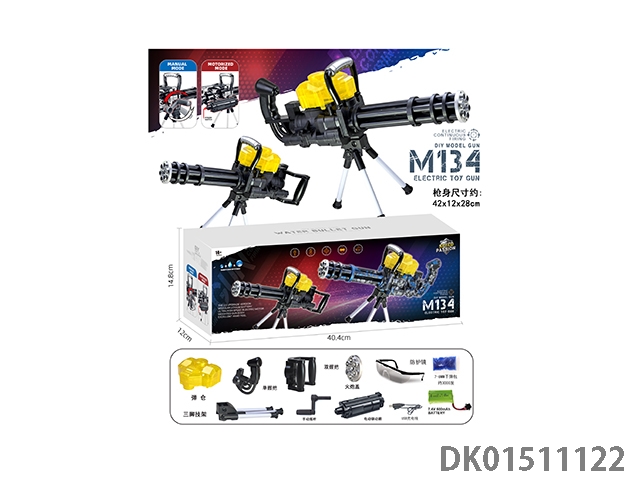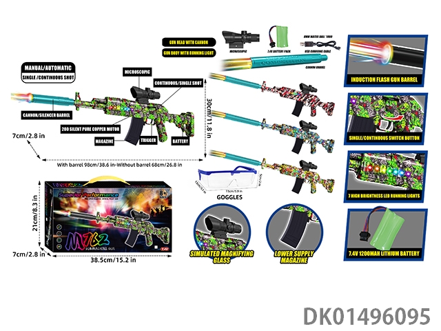 可拆装4节11合1双锂电池供电七彩灯光电动声音大M762突击步枪水球8毫米空气弹射下供弹3种模式射击游戏套装(枪头感应镭射灯炮和枪身环绕流星灯)