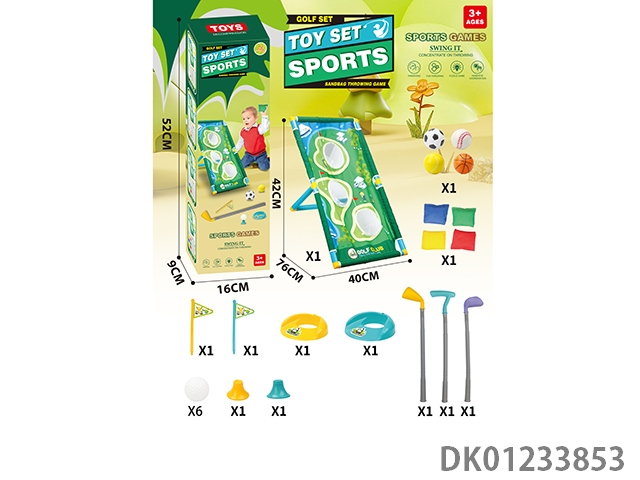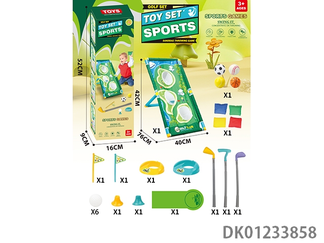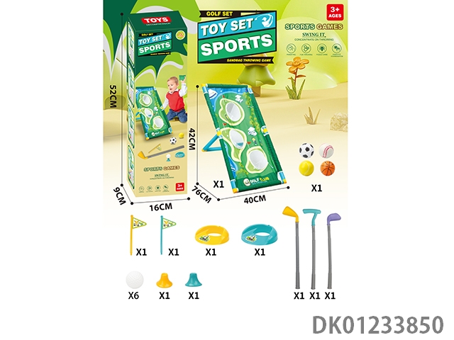 Multi functional golf set hole throwing swimming rack with 4 sandbags and 6 golf balls added