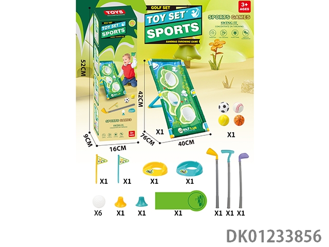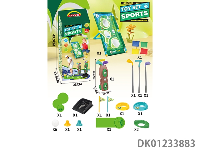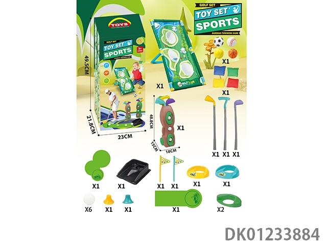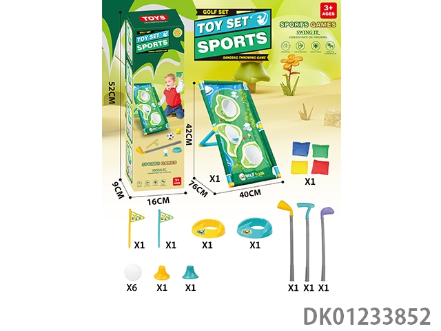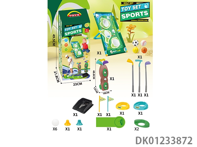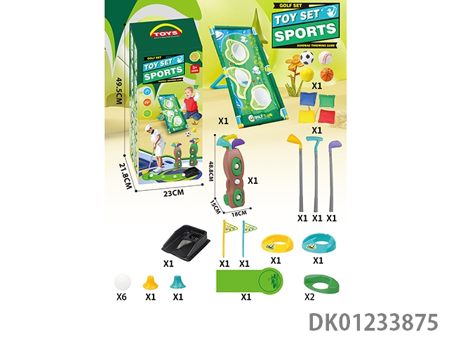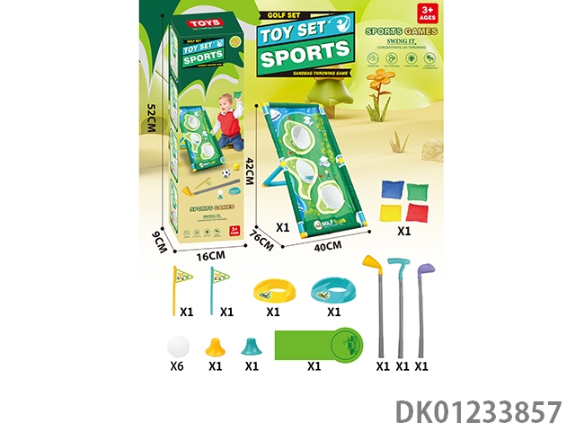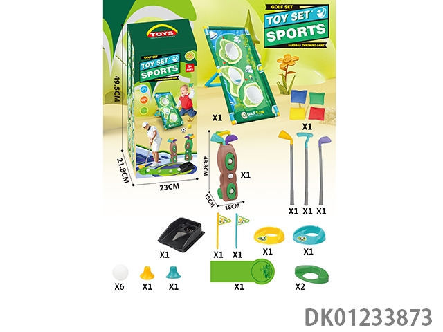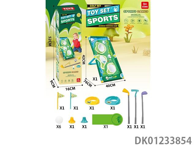 Multi functional golf set hole throwing swimming rack with a fairway length of 96cm and 4 sandbags and 6 additional golf balls