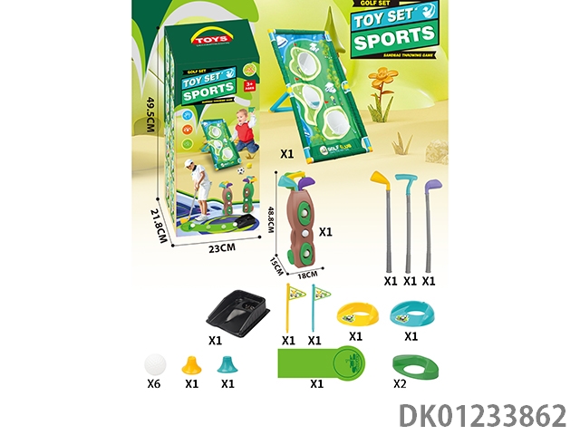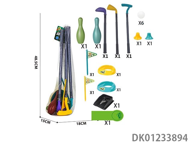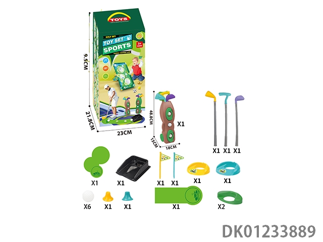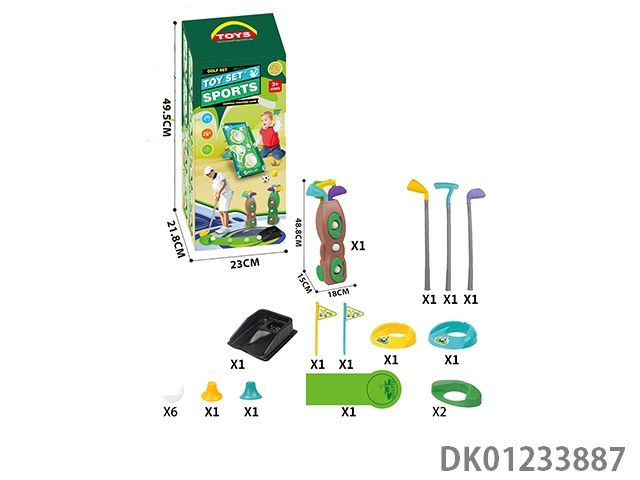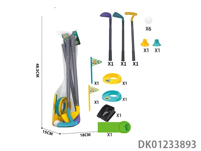 3 Golf clubs, 2 sets of hole flags, and a training track set (96cm long)