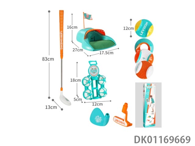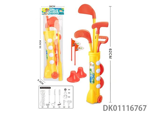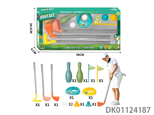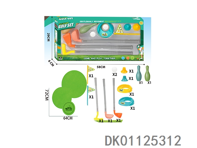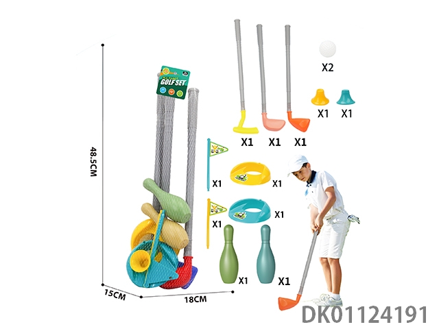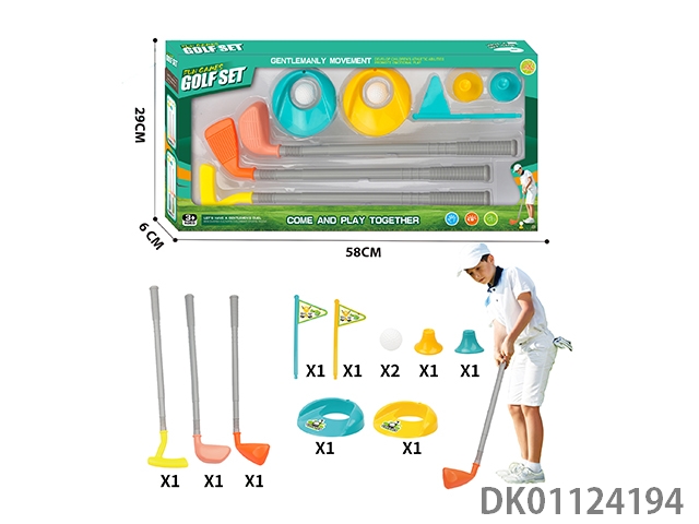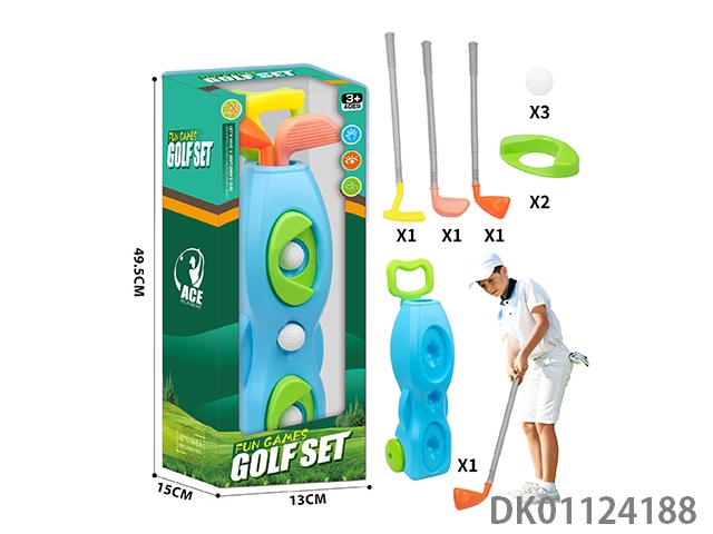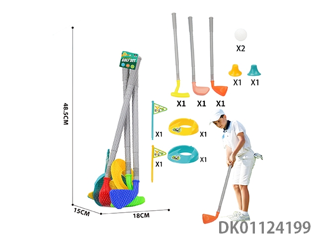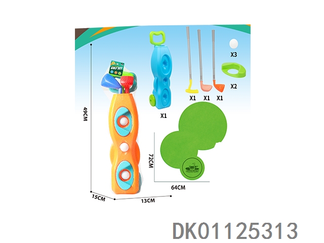 3 Golf clubs and 2 sets of hole flag balls with a piece of fiber non-woven fabric 64x72cm