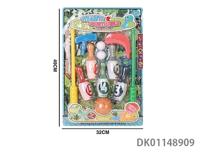 3 Golf clubs, 2 sets of hole flag balls, 2 bowling balls, and a piece of fiber non-woven fabric 64x72cm