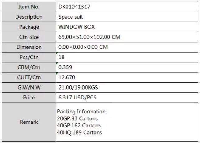 Packing Information: 20GP:83Cartons; 40GP:162Cartons; 40HQ:189Cartons