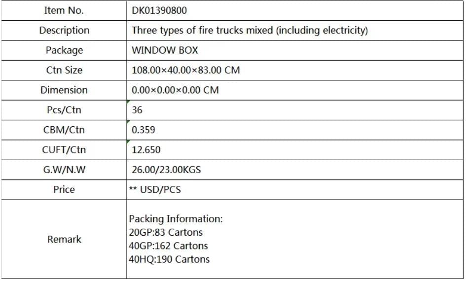 DK01390800 Three fire truck models mixed installation (electricity included)