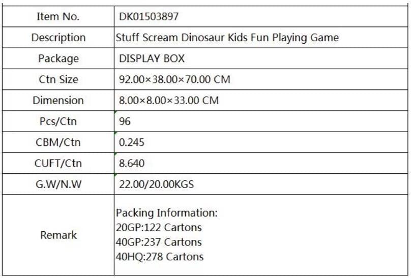 Packing Information: 20GP:122Cartons; 40GP:237 Cartons; 40HQ:278Cartons